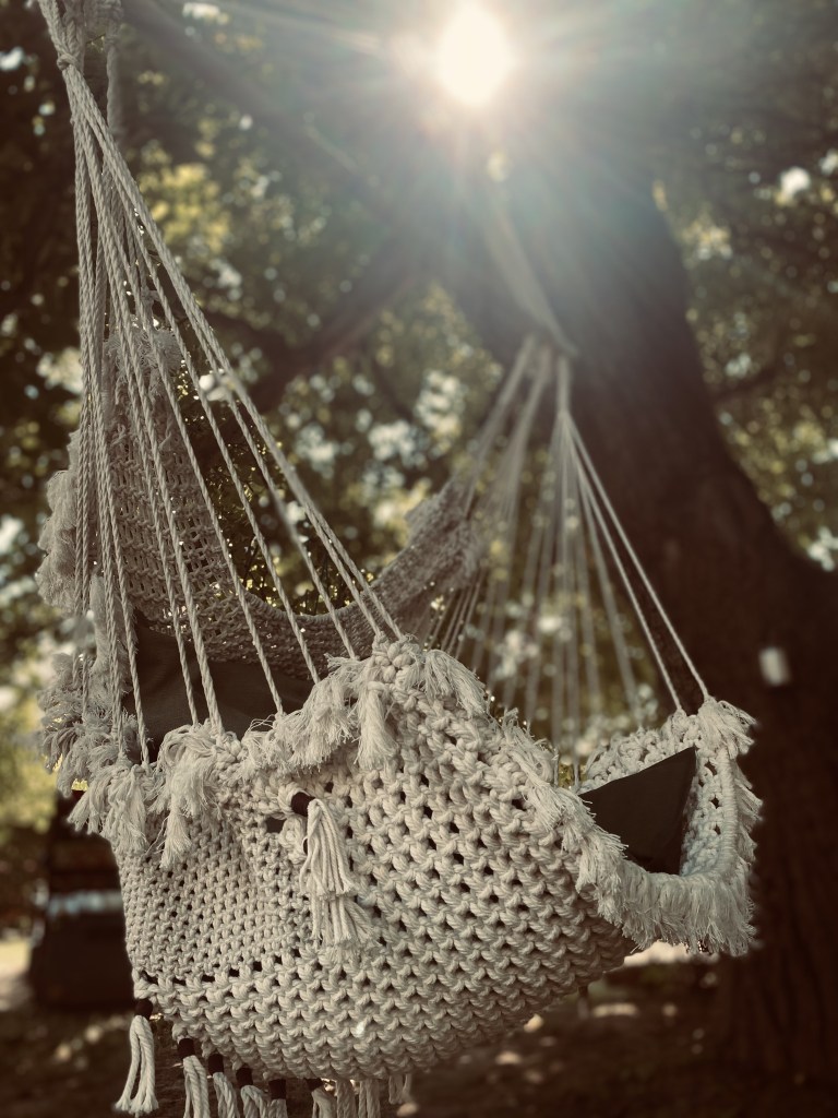 In einem Baum, unter die Pergola, im Wintergarten oder vielleicht auf dem Balkon? Ein Hängesessel ist immer ein Ort, um die Seele baumeln zu lassen. Entstanden ist die Idee ebenfalls aus einem Upcycling. Mein vor vielen Jahren gekaufter Hängesessel entpuppte sich als höchste Gefahrenstufe für Kinder. Also habe ich das selbst in die Hand genommen und einen Rückzugsort für Groß und Klein geknüpft. Und was soll ich sagen, die Kinder lieben ihn!